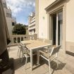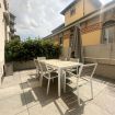 Trilocale situato al piano primo con grande terrazza attrezzata, accessibile dalla zona giorno. Arredato in modo completo e ricercato, con utilizzo di materiali pregiati, quali; parquet in rovere, ceramiche Marazzi, velluti, carte da parati, rivestimenti in legno e coordinati tessuto. Cucina completamente attrezzata e biancheria da letto/bagno. L'appartamento dispone di una con lavanderia